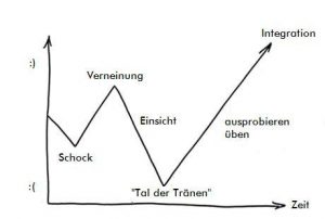 Phase 4: Akzeptanz – Das „Tal der Tränen“: Quasi der Tiefpunkt im Umgang mit der Veränderung.